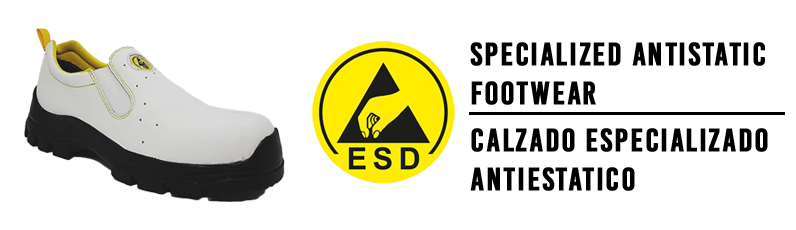Puntera de Protección: Poliamida // Sole: PU / Antiderrapante / Dieléctrica // Suela Especial: ESD Hule / ESD PU.